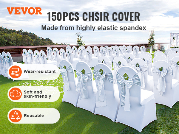 The crisp white color of these wedding chair covers enhances the atmosphere of any event, adding a touch of elegance and sophistication. Perfect for formal occasions like weddings, baby showers, and other special events, the white fabric complements a wide variety of decor styles and color schemes. These covers are versatile enough to adapt to both indoor and outdoor settings, making them ideal for any venue. The bright white color not only makes the chairs look immaculate but also creates a welcoming ambiance, ensuring your guests feel comfortable and impressed from the moment they arrive. Their ability to blend seamlessly with other decorations and themes makes them a timeless choice for any event.